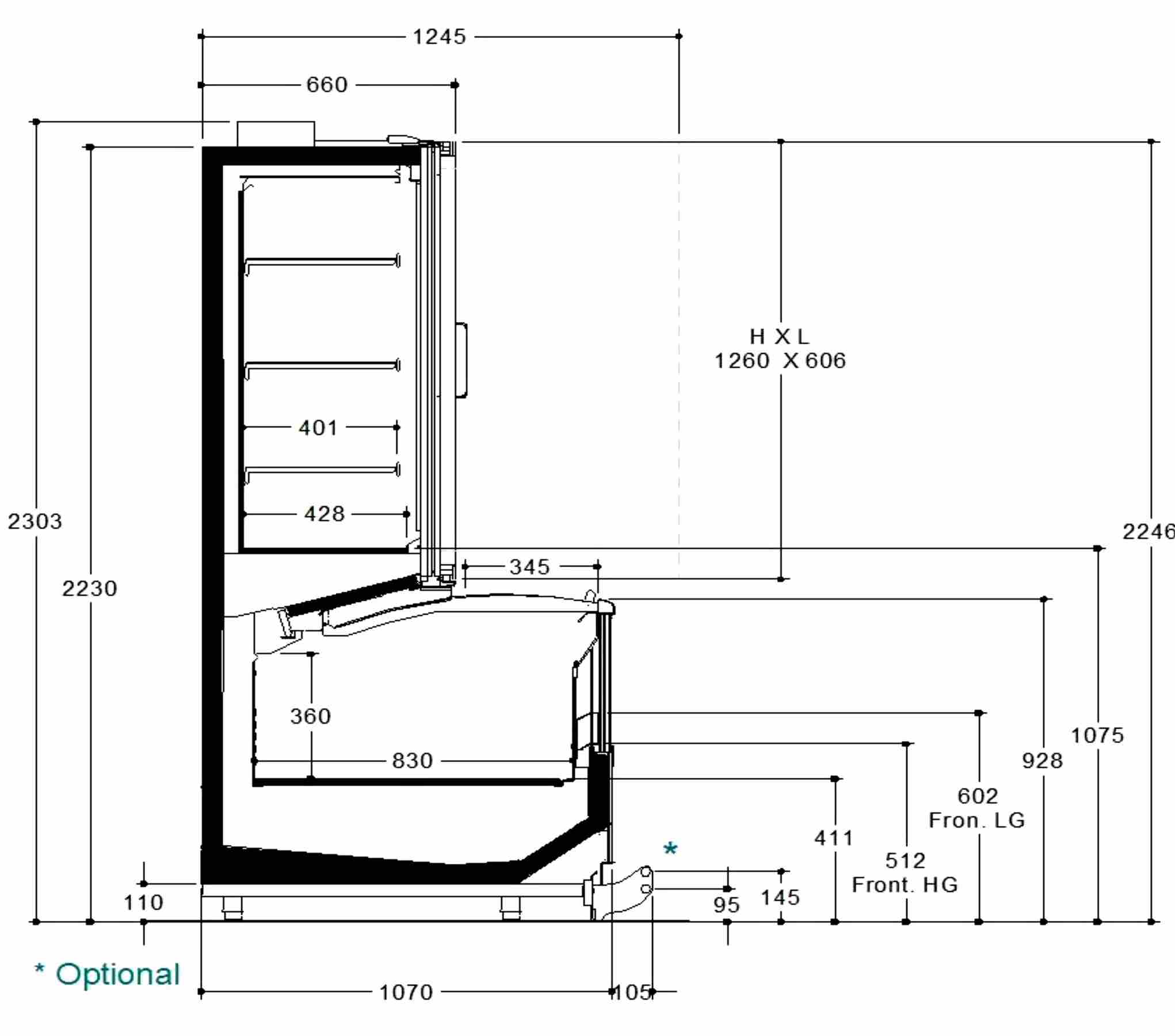 Mural combi de grupo remoto para productos congelados. Se caracteriza por la solución combinada que conjuga una base protegida por tapas correderas de vidrio con una estructura elevada sin cubierta y puertas a toda altura.