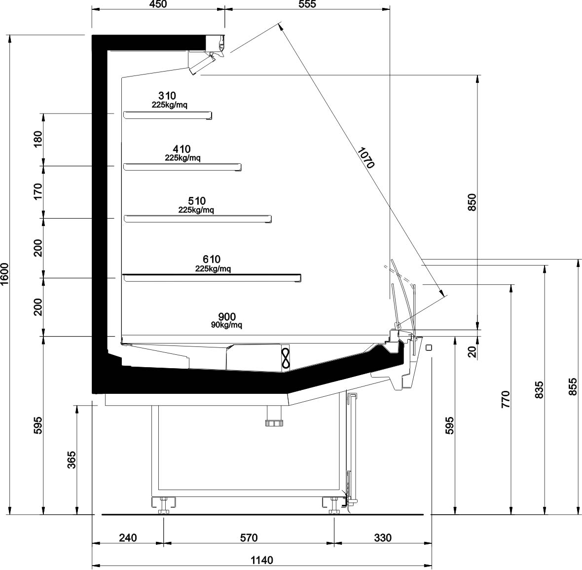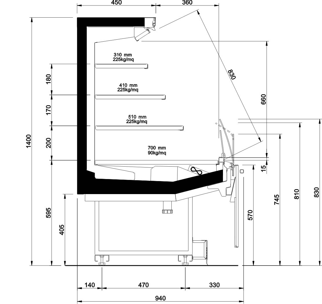 Destinado a los supermercados e hipermercados, es un mueble extremadamente personalizable, disponible en varias estéticas, que ofrece una excelente relación entre la superficie de exposición y el espacio ocupado en el suelo.