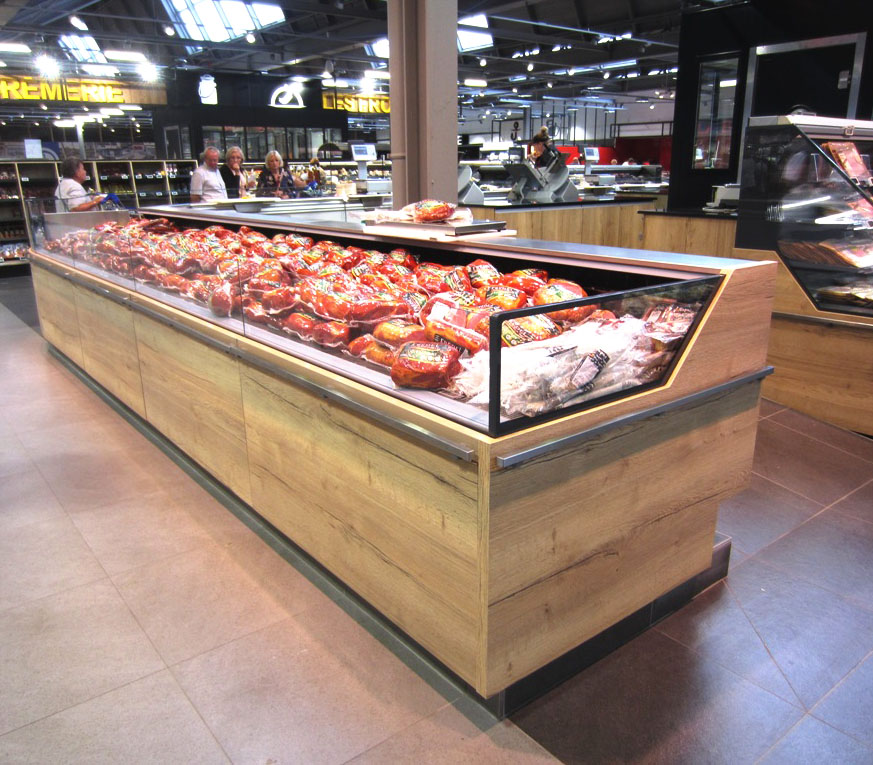 Adecuada para las áreas de venta medianas y grandes, así como para las tiendas especializadas, es ideal para la conservación y presentación de alimentos frescos a granel como por ejemplo productos cárnicos, charcutería, lácteos y productos delicatessen.