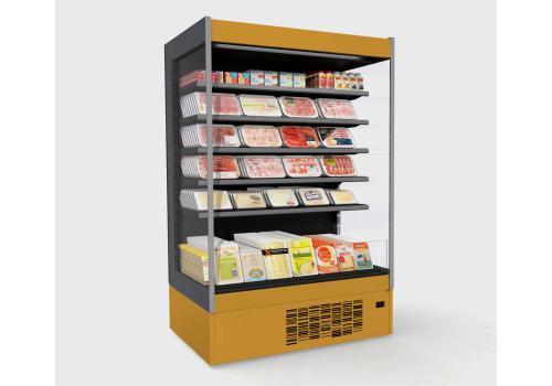 Meuble réfrigéré vertical LS ouvert avec groupe logé fonctionnant au gaz propane R290, il est conçu dans un esprit d'éco-durabilité et d'économie d'énergie.