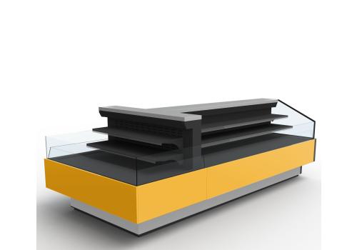 Meuble réfrigéré semi-vertical libre service et double cuve, destiné aux produits frais pré-emballés, avec un excellent rapport entre le volume d'exposition et la surface occupée au sol.