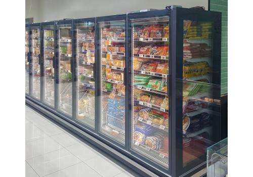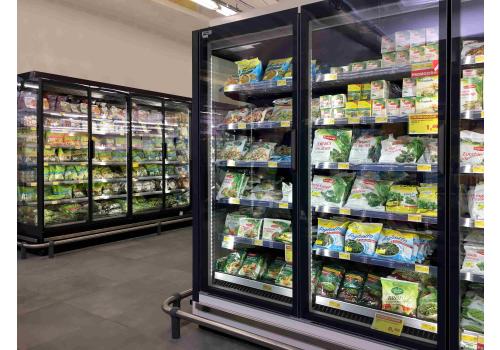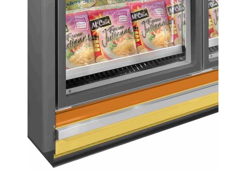 Great layout flexibility, thanks to 2 heights, 2 depths, 4 lenghts and 3 head cabinets that allow island compositions. The homogeneity with the SkyEffect family allows to create innovative lines which mix verticals for frozen products and for fresh products.