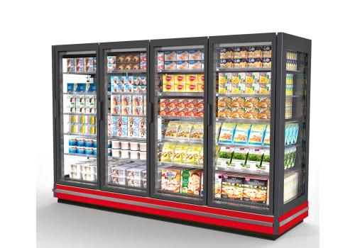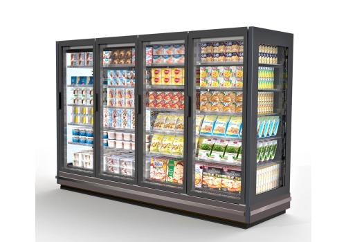 Vertical display tub cabinet with remote unit for frozen products. The exclusive design, the full height doors and the technological solutions adopted offer unprecedented merchandising and product visibility.